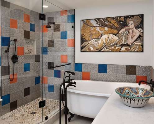 Bathroom with green wave backsplash