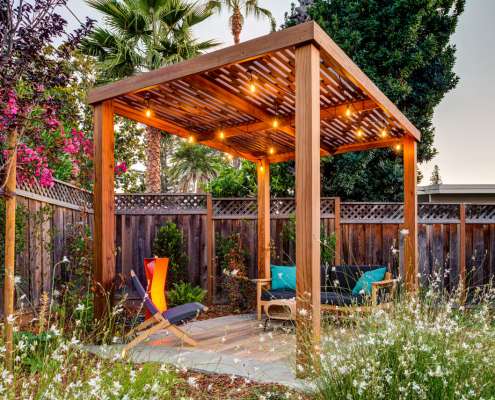 gazebo outdoor seating and pool daytime